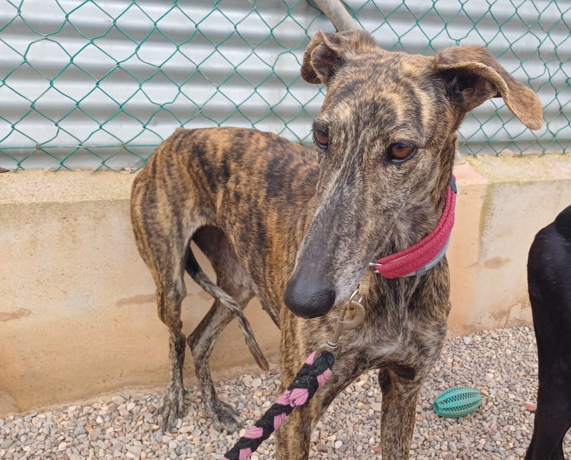 Buleria ist eine wunderschöne schwarze Galgohündin, die gemeinsam mit ihrer Schwester Bandera (braun-gestromt) von einem Jäger aussortiert wurde. Buleria und Bandera sind am 17.03.2026 in unser Refugio in Spanien eingezogen. Im Moment ist Buleria noch etwas nervös, doch mit Geduld, Ruhe und liebevoller Führung werden sie ganz sicher noch Vertrauen fassen. Mit Kindern kommt Buleria gut zurecht und zeigt sich freundlich. Wie sie auf Katzen reagiert, ist bisher nicht bekannt. Buleria ist kein Hund für Anfänger. Sie sucht ein einfühlsames, erfahrenes Zuhause, das ihr die Sicherheit gibt, die sie braucht.